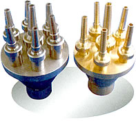 花柱喷头是多孔散射喷头的一种,又名层花喷头、花篮喷头等。喷水时,其外观形似一束鲜花,造型美观,安装方便,适用于各种场合的喷水池中。